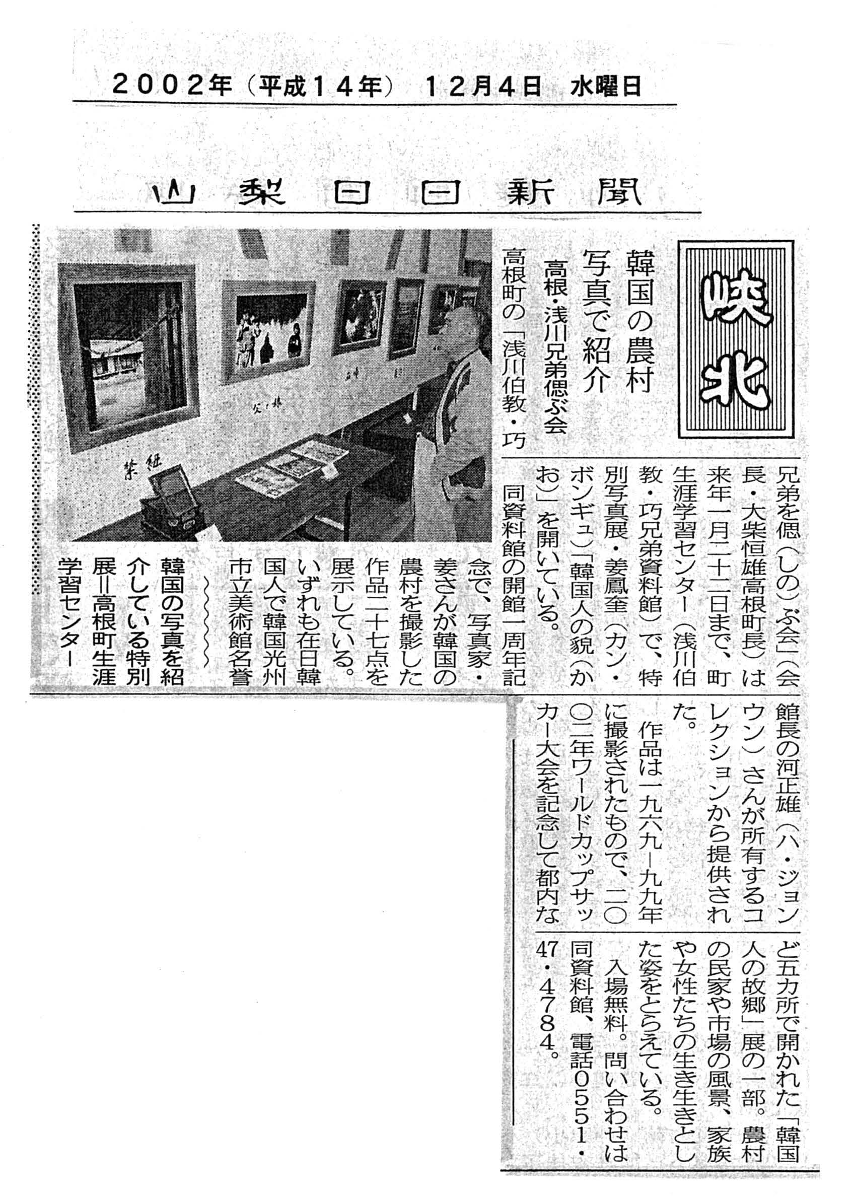 | 2002年11月23~2003年1月22日 | 姜鳳奎「韓国人の貌」写真展開催・資料館にて |