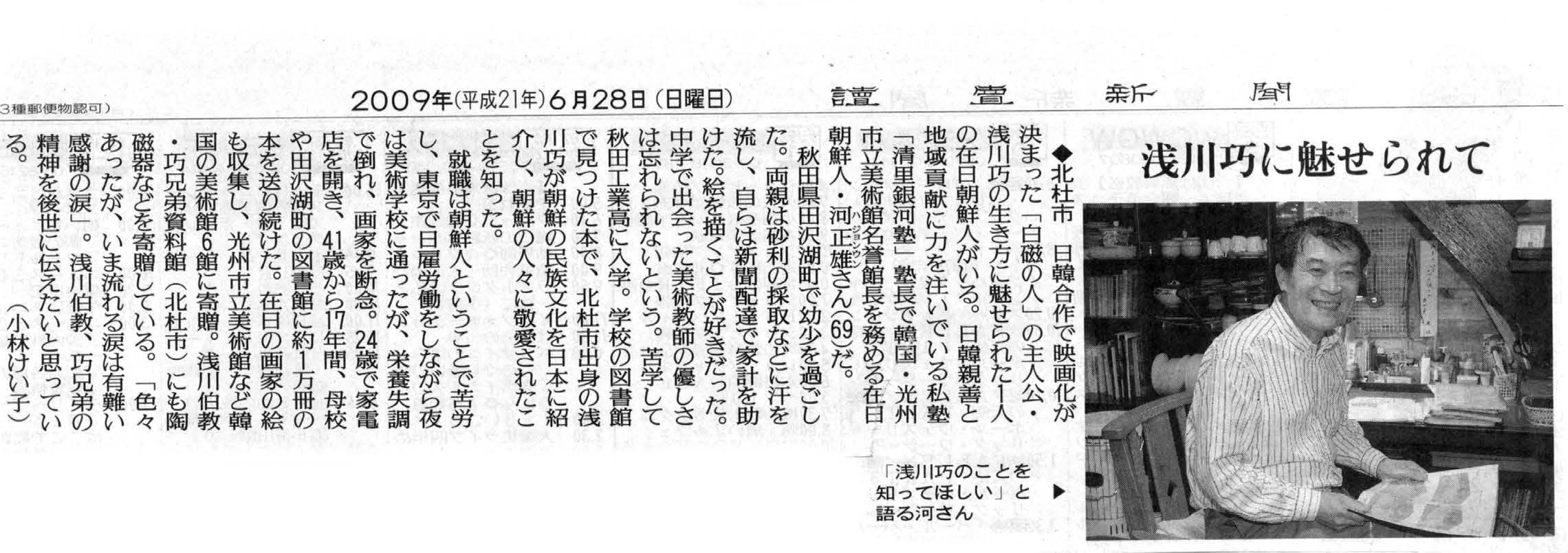秋田の高校時代に知った事から、浅川巧は私が在日として生きる為の人生哲学を学んだ敬愛する日本人の一人である。人間誰でも自分だけの隠し田を持ちたがるものだが、韓国人と向き合った浅川巧は隠し田など一切持たなかった。