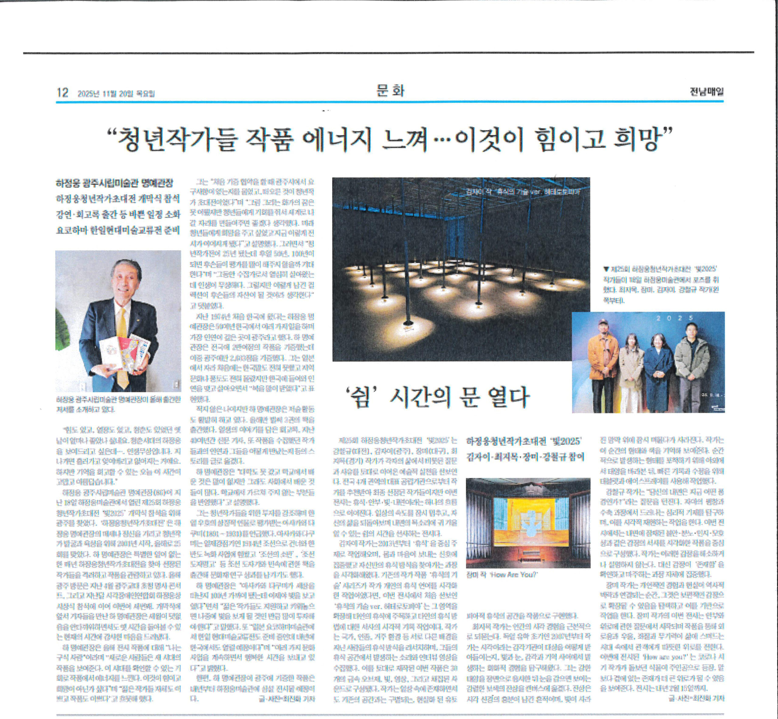 第25回”光”2025河正雄青年作家招待展2025年11月18日~2026年2月15日:光州市立美術館 河正雄美術館