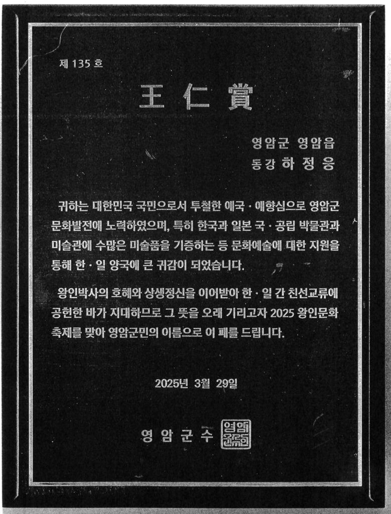 2025霊岩王仁文化祝祭『王仁賞』を受けて